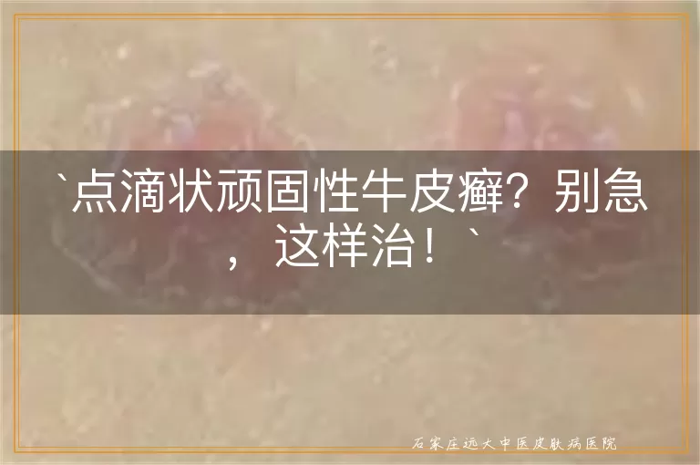 首先啊,得弄清楚这牛皮癣是咋回事。点滴状顽固性牛皮癣,听名字就知道,它是牛皮癣的一种,特点呢就是皮损像小雨滴一样散在皮肤上,而且特别顽固,不容易好。这病啊,跟免疫、遗传、环境好多因素都有关系,治疗起来得综合考虑。